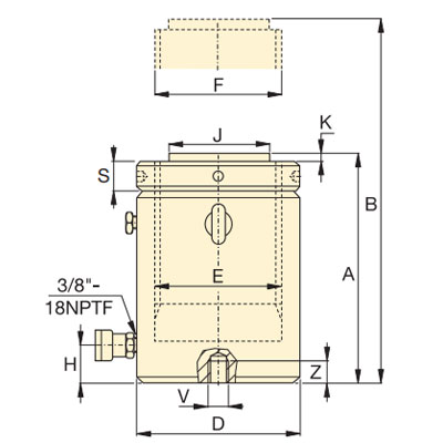 | 型号 | 承载能力 | 有效行程 | 本体高度A | 液压油量 | 油缸外径D | 柱塞直径F | 标准鞍座直径J | 重量 | 倾斜式鞍座参数说明 | ||