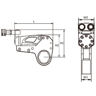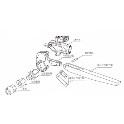 | 动力头型号 | 扭矩范围 | 适用螺母对边 | 尺寸参考 | 动力头重量 | 六角驱动盒重量 | |||||